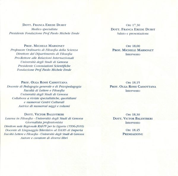 Premiazione Quinta Edizione Premio Prof. Paolo Michele Erede