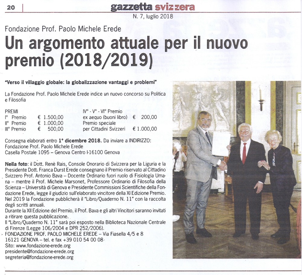 GAZZETTA SVIZZERA - N° 7 Luglio 2018